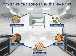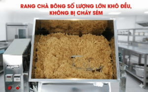 Ngoài rang chà bông, máy còn có thể dùng để đảo gia vị có gia nhiệt, sấy khô nguyên liệu, trộn nguyên liệu cần nhiệt như: