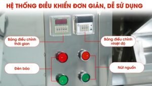 Máy rang sao tự động giải quyết gọn các “nút thắt” này, biến việc rang ruốc từ “công trình đứng bếp” thành một thao tác cài đặt.