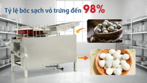 Không chỉ nhanh, máy còn cho tỷ lệ bóc sạch vỏ lên tới 98%. Trứng sau khi bóc trắng đều, ít trầy xước, hạn chế dập nát (kiểm soát dưới 5%), giữ được hình dáng và chất lượng thành phẩm đồng đều hơn so với bóc tay.