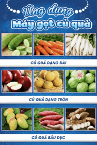 Máy phù hợp với nhiều loại củ quả có vỏ mỏng, dạng tròn, dài hoặc bầu dục như: